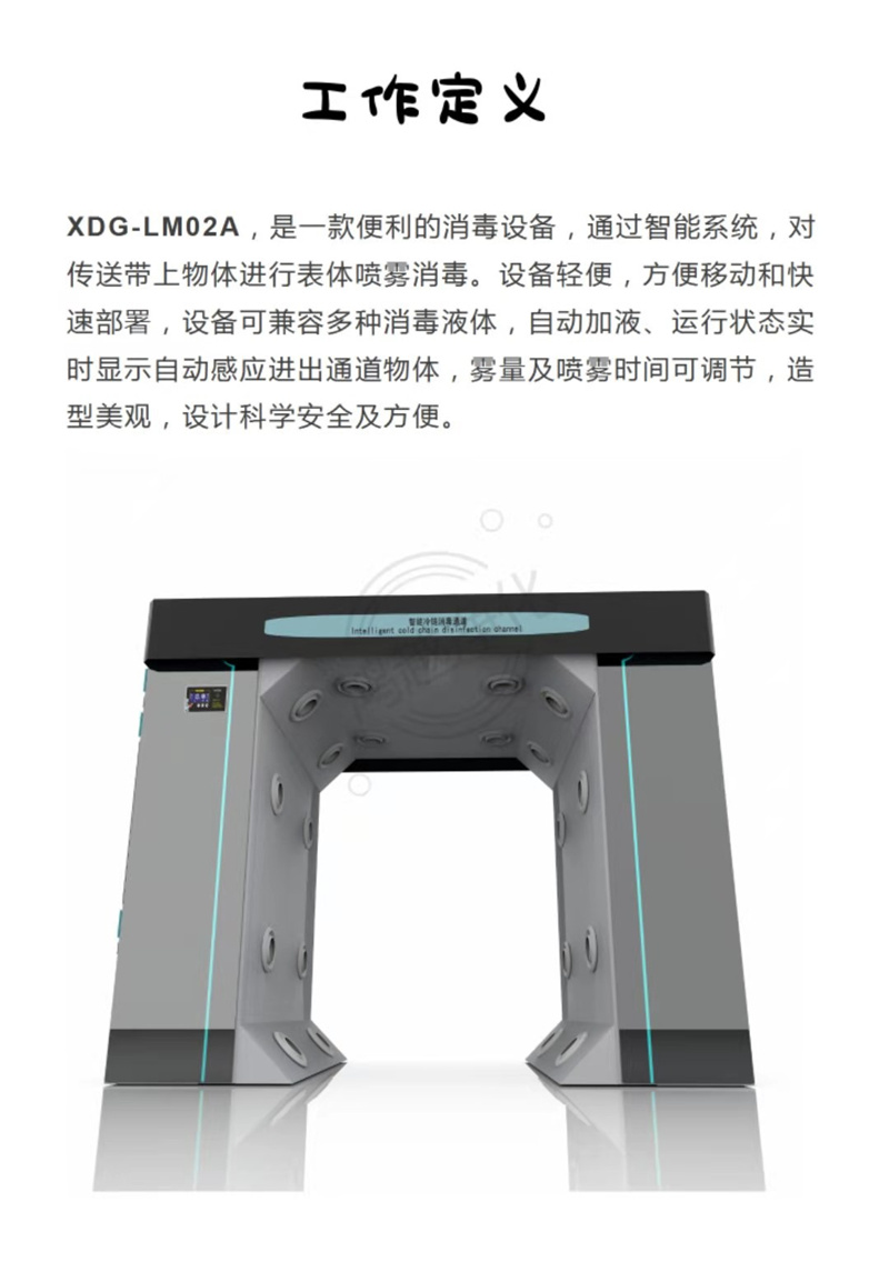 XDG-LM 02 A ,是一款便利的消毒設(shè)備,通過(guò)智能系統(tǒng),對(duì)傳送帶上物體進(jìn)行表體噴霧消毒。設(shè)備輕便,方便移動(dòng)和快速部署,設(shè)備可兼容多種消毒液體,自動(dòng)加液、運(yùn)行狀態(tài)實(shí)時(shí)顯示自動(dòng)感應(yīng)進(jìn)出通道物體,霧量及噴霧時(shí)間可調(diào)節(jié),造型美觀,設(shè)計(jì)科學(xué)安全及方便。