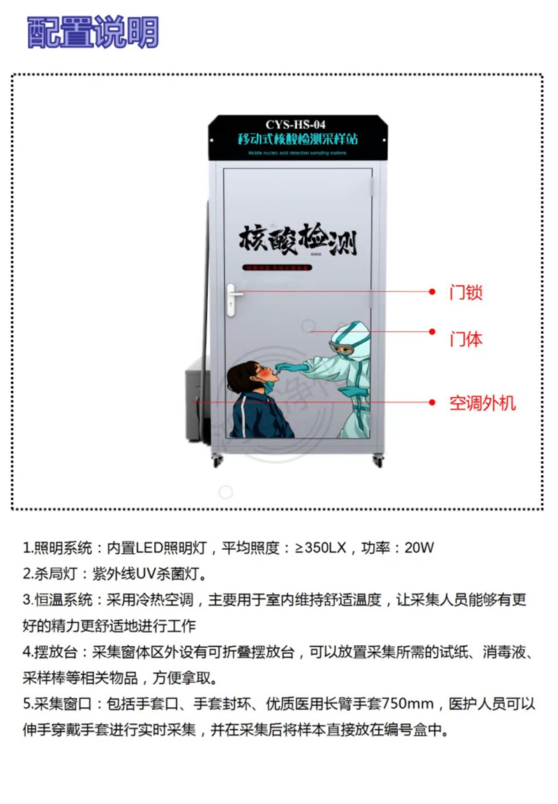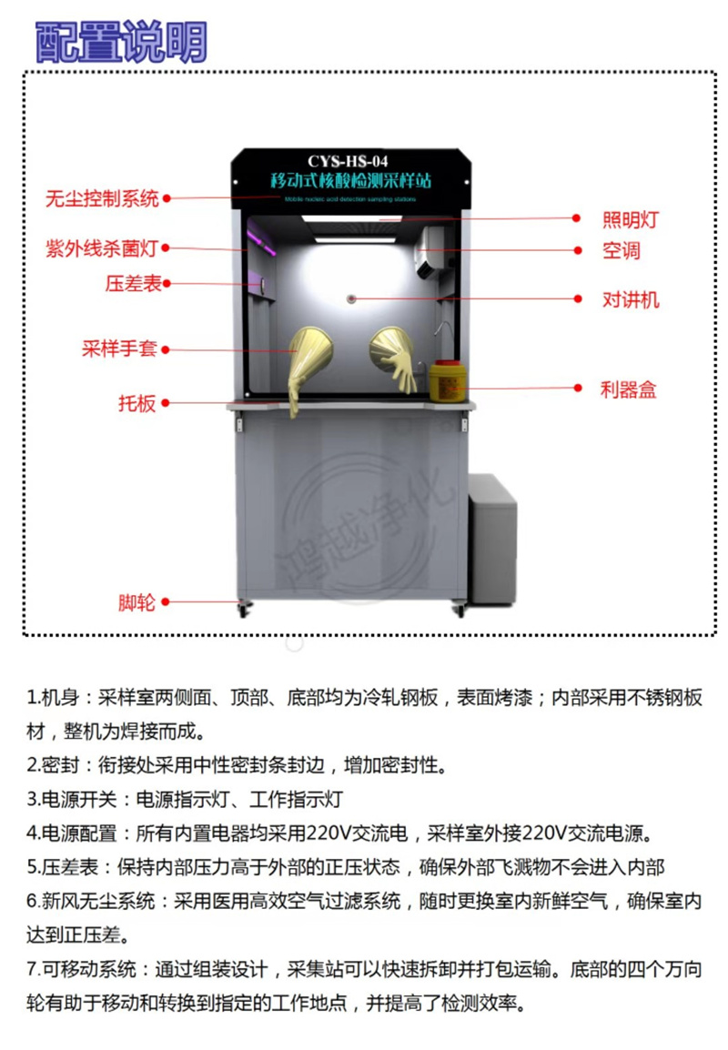 移動式核酸檢測采樣站參數(shù)說明: