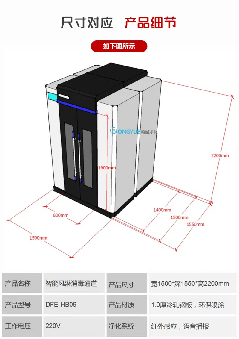 HB09智能風淋消毒通道參數說明: