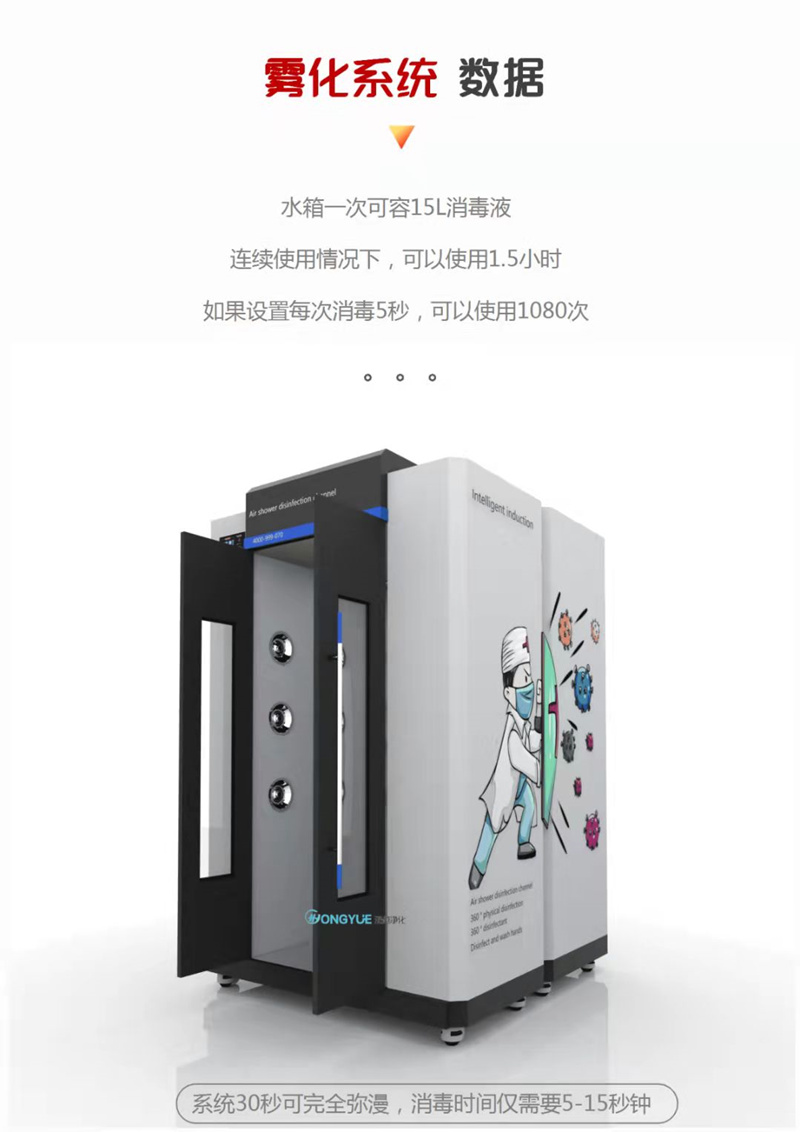 12、霧化系統(tǒng):通過霧化板將消毒液霧化成1-10微米的消毒顆粒,快速地附著于人體或物體表面,從而消滅病毒,可有效預防新型冠狀病毒的傳染;